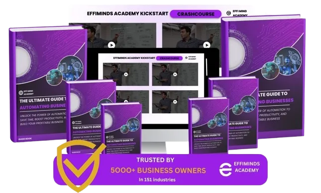 At Effi Mind Academy, we’re on a mission to teach you how to leverage the incredible potential of automation to revolutionize businesses and create a highly profitable venture of your own. Whether you want to help companies save time, cut costs, or boost productivity, this course will equip you with the skills to become an automation expert and start your own consulting business.