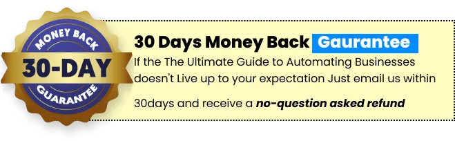 Don't let uncertainty hold you back any longer. Get your free "The Ultimate Guide to Automating Businesses" ebook now, and take the first step towards building your 6-figure business with the power of automation. Backed by our 30-day unbeatable money-back guarantee.